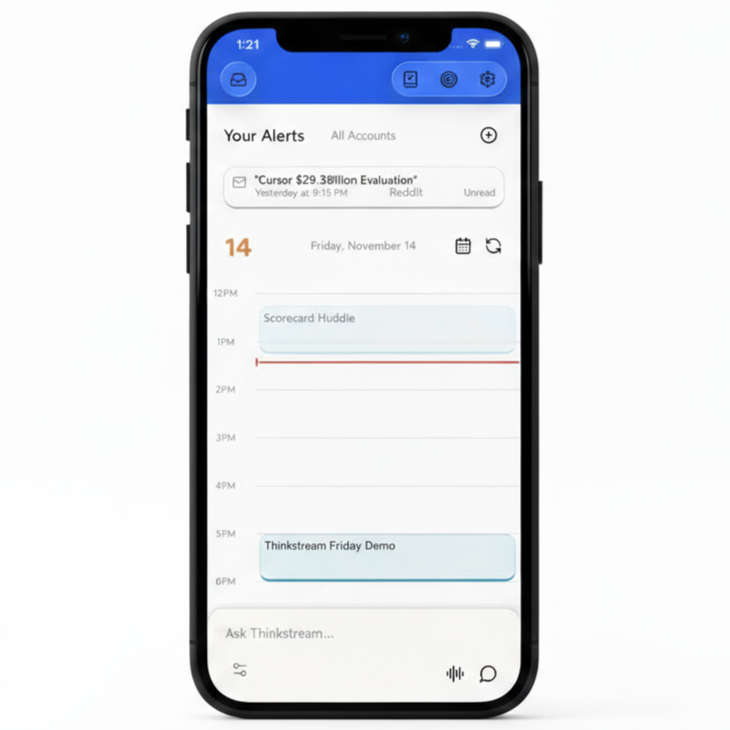 Your ThinkStream assistant organizes around your goals, not your inboxes.